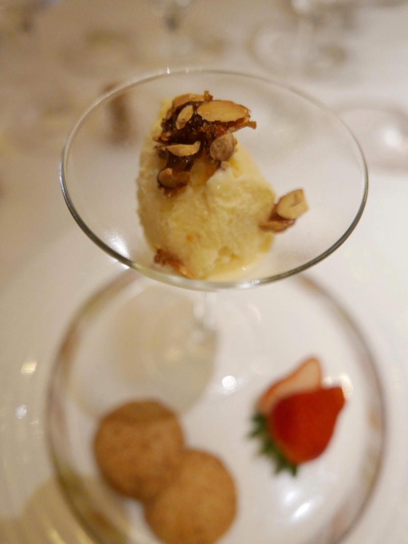メインディッシュはコストレッタ・アッラ・ヴァルドスターナ。フォンティーナチーズをのせた仔牛のカツレツです。今回は中に…ナイフを入れると、中からヴァタレ・ダオスタ州のフォンティーナチーズがとろ〜り!言葉を失う旨さ!フォンティーナはそのままでも美味しいのですが、フォンドゥータというチーズフォンデュにも使用されるだけあって、加熱したときの美味しさはたまりません!おいしー!わたしは今回でフォンティーナのファンに❤︎