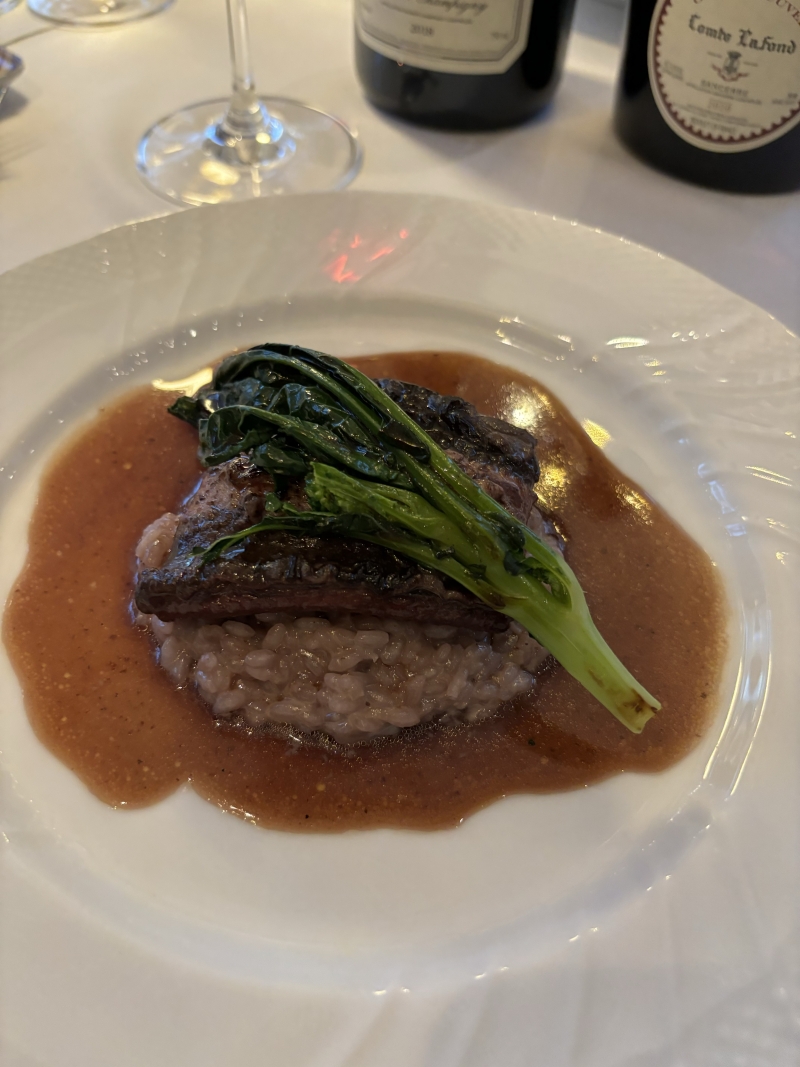 メインディッシュは鰻の赤ワイン煮と赤ワインのリゾット!