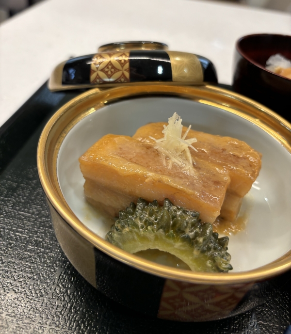 「沖縄の伝統料理ラフテーと沖縄県産原料の飲料の組み合わせ」