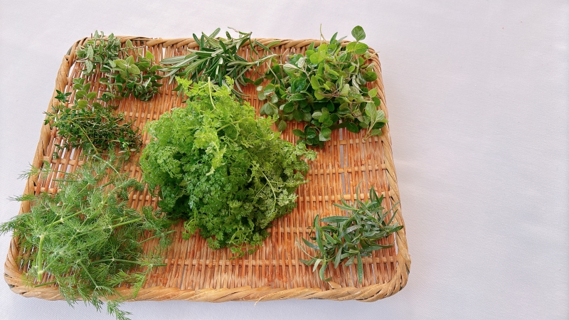 (サンヴァンサンでお出ししているハーブやお花は全てシェフが栽培しています。 ※バラは除きます)